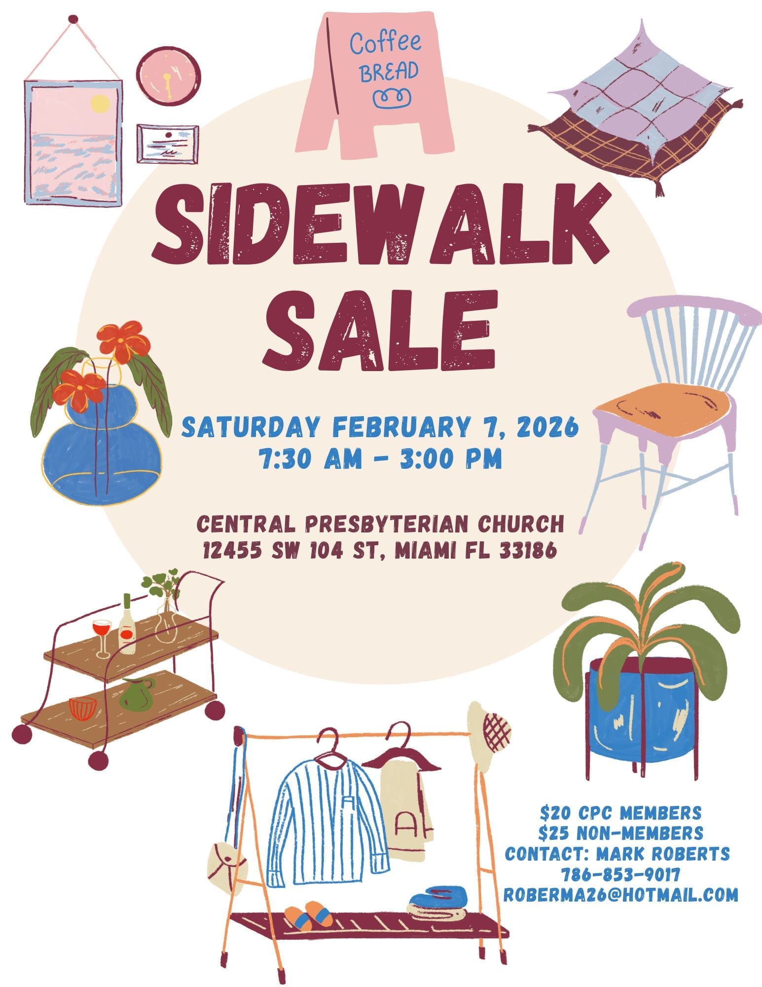 - Saturday 2/7, 7:30 am-3:00 pm | Sidewalk Sale (Vendors Welcome) – Central PC, Miami