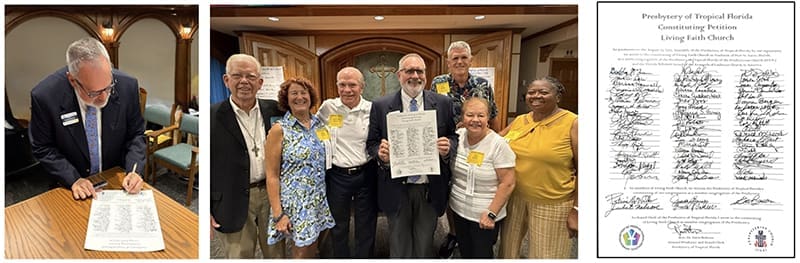 - Moderator Deborah Sadriwalla and GPSC Daris Bultena led worship that included the reception of Living Faith Church, of Traditions, Port St. Lucie as a Union Congregation with the Florida-Bahamas Synod of the Evangelical Lutheran Church in America. The service was highlighted with the Signing of the Constituting Petition that chartered the church with the Presbyterian Church (USA). The offering was designated to the PC(USA) Pentecost Special Offering.