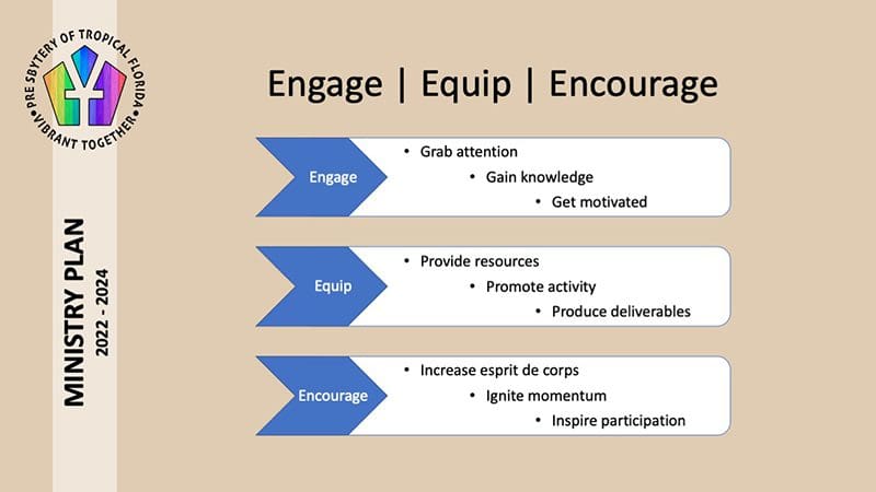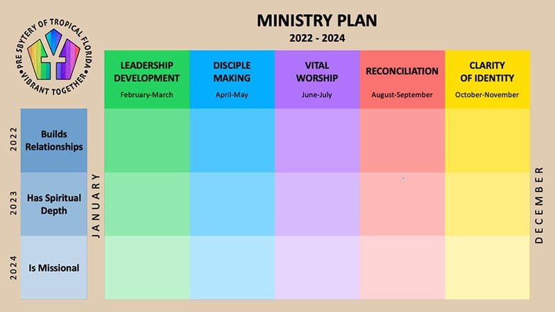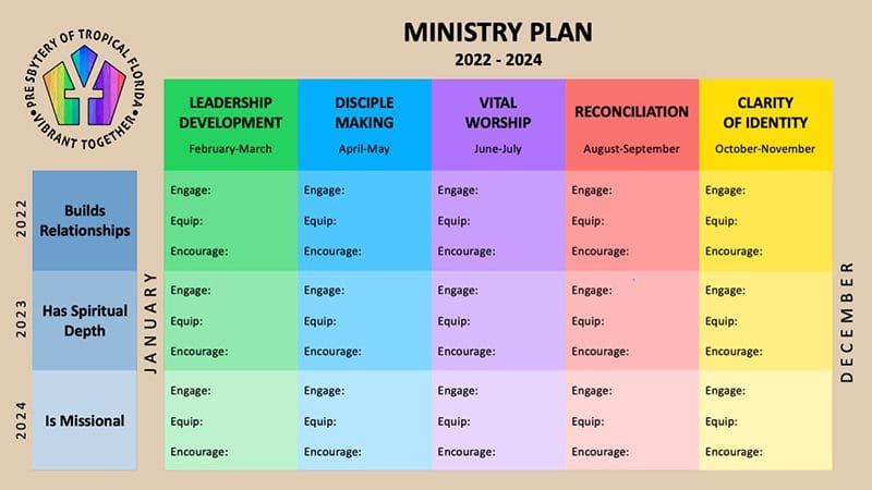 The Presbytery of Tropical Florida engages, equips, and encourages vibrant Christ-centered communities to build relationships, have spiritual depth, and be missional. Through leadership development, disciple making, vital worship, reconciliation, and clarity of identity we are Vibrant Together.